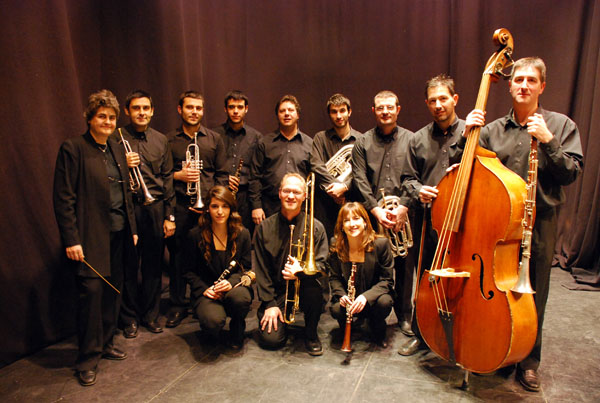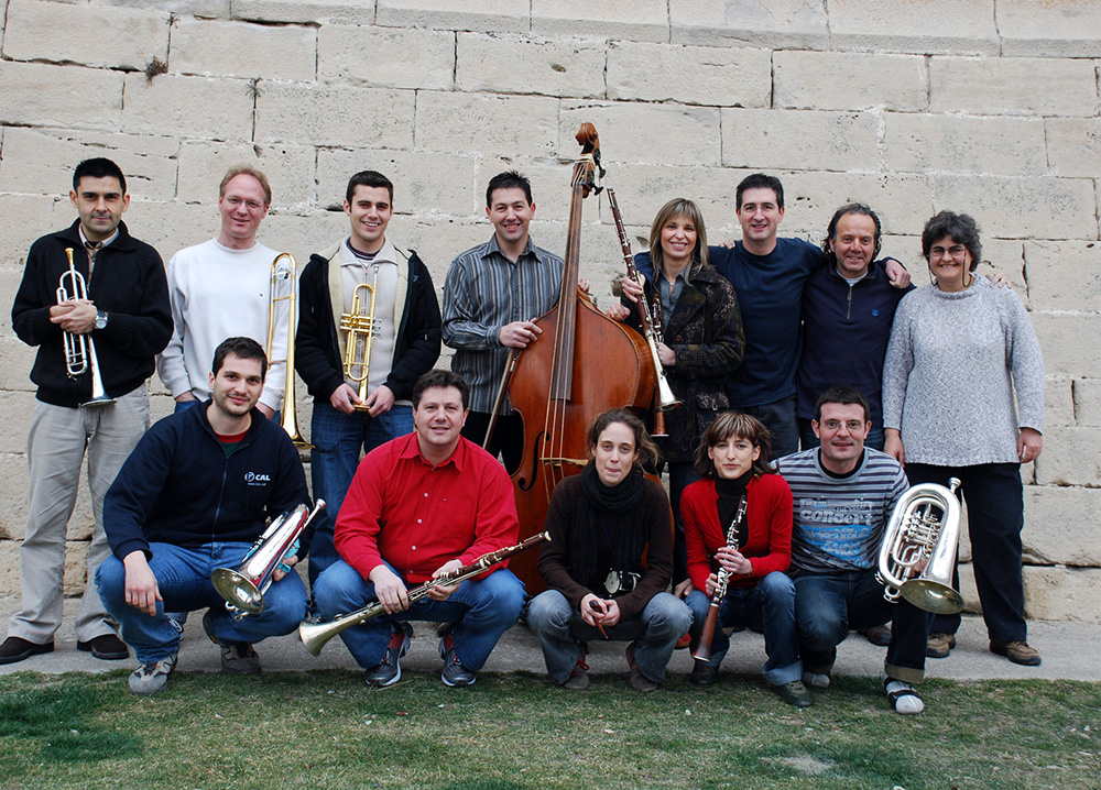 Bellpuig cobla amb Jordi Forés. El Perelló, 2007. D'esquerra a dreta: Francesc Saladrigues, Jordi Fo…