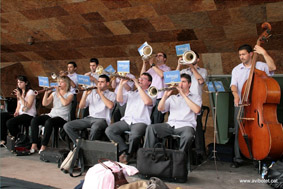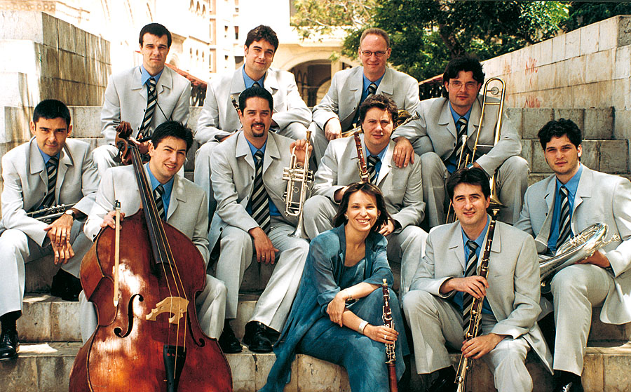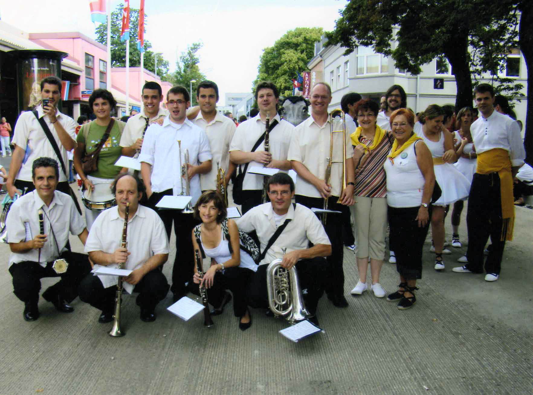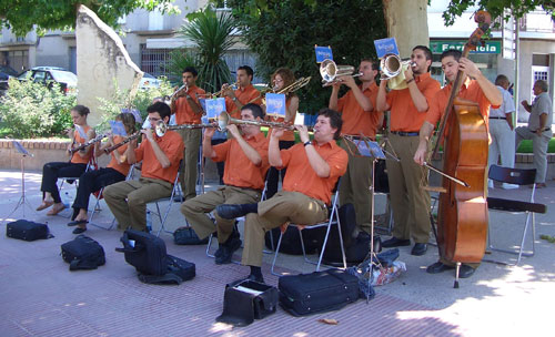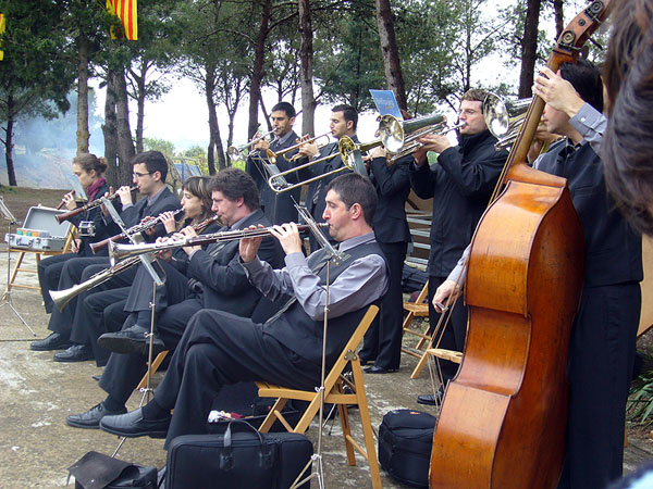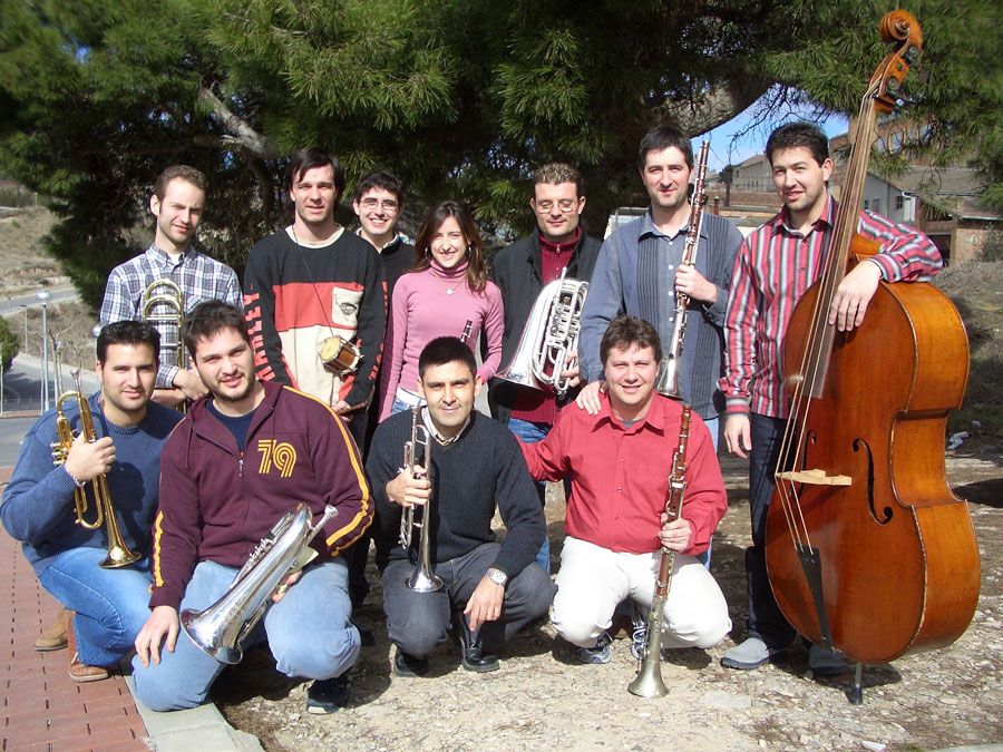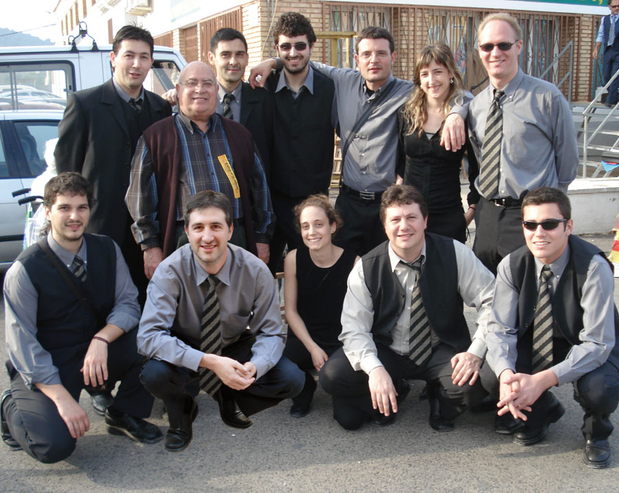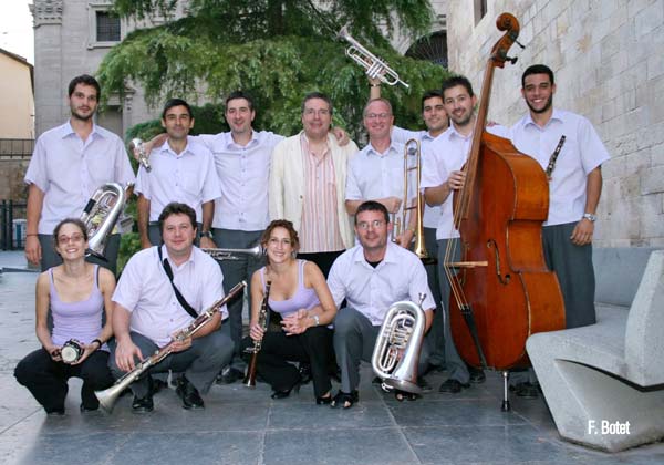 Bellpuig cobla amb Jordi Forés. El Perelló, 2007. D'esquerra a dreta: Francesc Saladrigues, Jordi Fo…